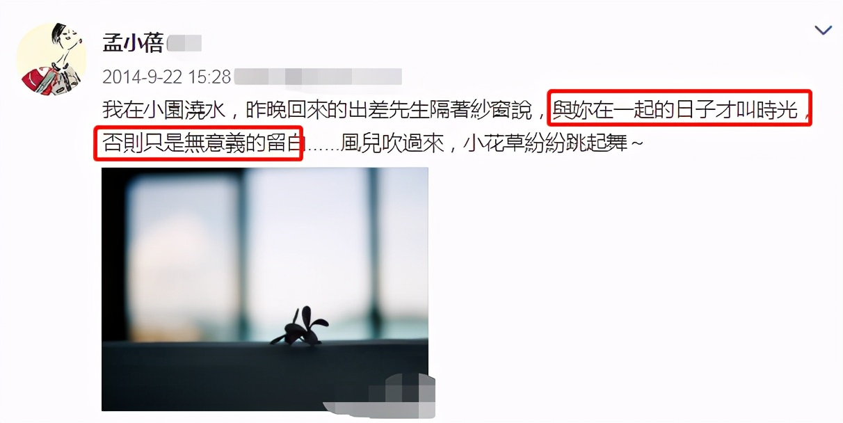 但孟小蓓从来不在社交平台上晒照,而是分享一些生活日常和感悟。她叫李健为“先生”,此前曾发文晒过李健对自己讲的情话,并用小花草跳舞来含蓄形容自己雀跃的心情,非常文艺。