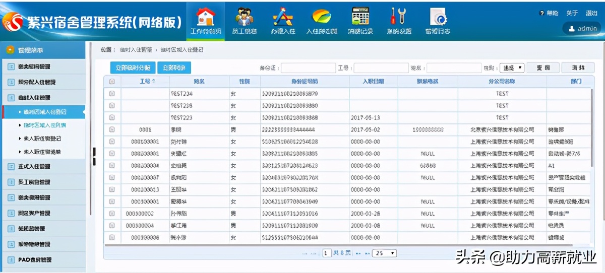 A 、入住管理:对企业人员办理入住,登记入住人员详细信息,以及支持批量导入入住信息操作。