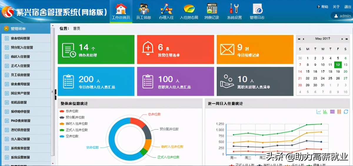 2、本软件集中解决了,宿舍管理跨区域、多楼栋、多床位的复杂管理,数据集中处理、人员分散管理,住宿信息一目了然,大大提高管理部门的工作效率及准确率。