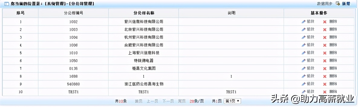 A 、部门管理:对各个公司内部门信息的添加、编辑与各项操作管理。