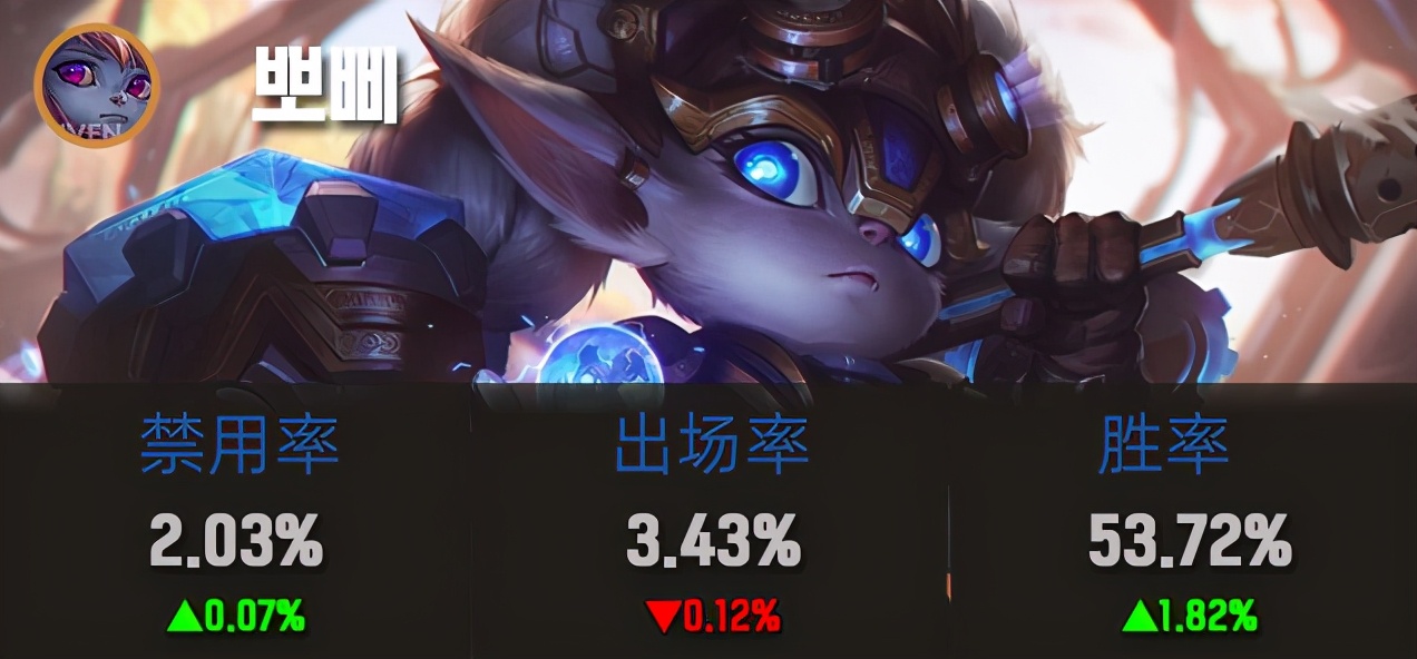 波比在这次的补丁中没有任何的调整,但胜率方面则是提高了很多,来到了53.72%,不过,她的出场率中只有3.43%,并不是一个非常热门的英雄。波比可以对抗德莱厄斯以外的其他热门上单英雄,因此,她在目前的版本中有不错的表现,预计波比在后续会有崛起的机会。