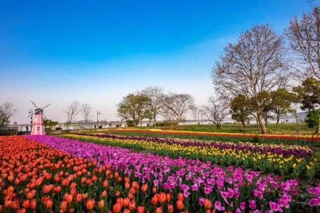 不过“兰陵美酒郁金香”究竟是“谁”香?这个谜团就让专家学者大咖们继续去探究吧。面对春光中的美景,我们负责赏花就好。中科院武汉植物园60万株球根花卉正在陆续绽放,成片的花海在风车的转动中,清新浪漫。趁着春光正好,来赏美景吧,在无边的郁金香花田里感受诗仙太白今朝有酒今朝醉的豁达心境。