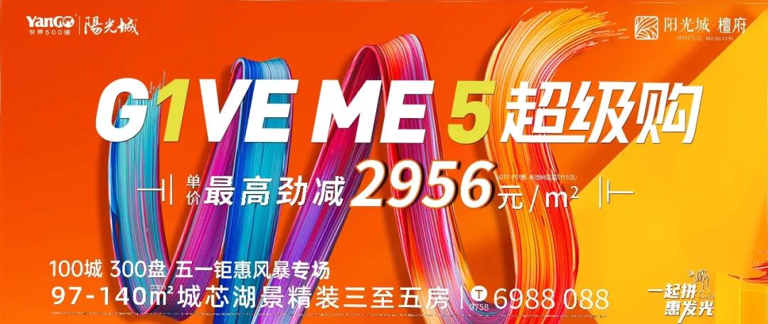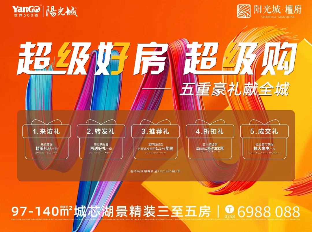 阳光城·檀府,如此实力和品质、如此钜惠的五一优惠价,好房源臻席递减。把握好这个五一,在城芯这片岛居上,落下自己的梦想,犒劳一直在奋斗路上的自己吧!