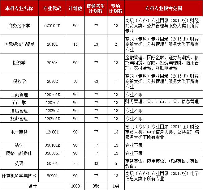 (一)总计划1000人,分专业计划数与可接受报考的专科专业见下表。(普通高等学校高等职业教育(专科)专业目录(2015版)见附件1)