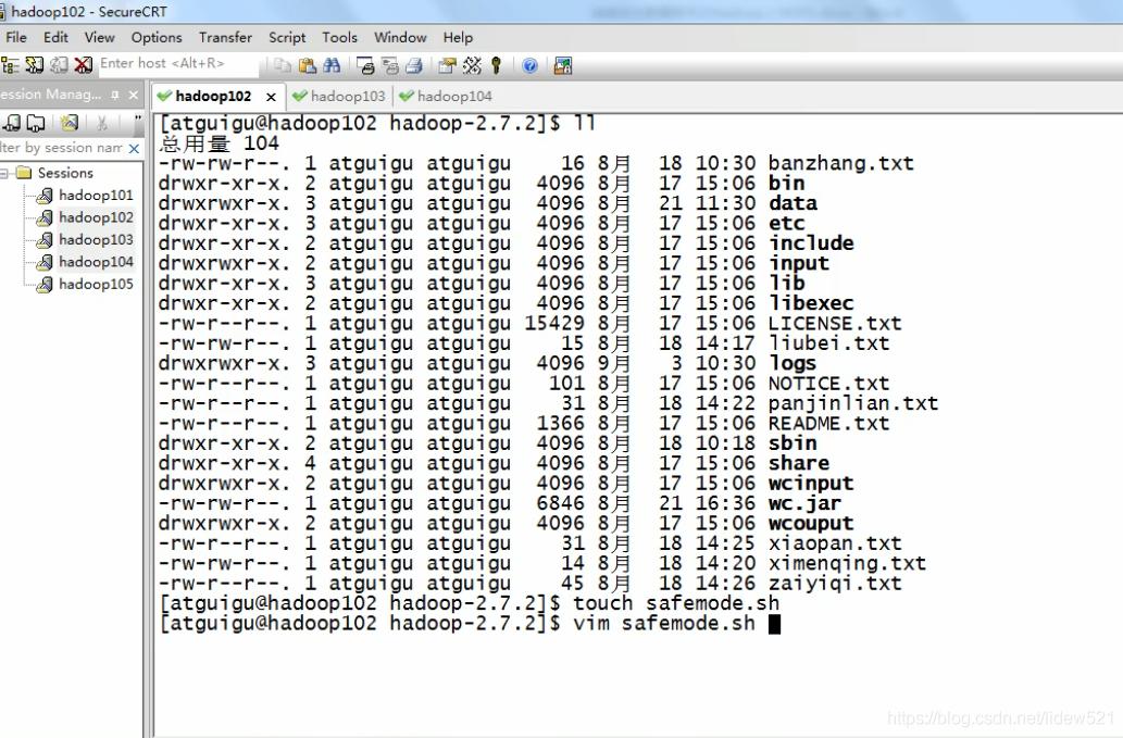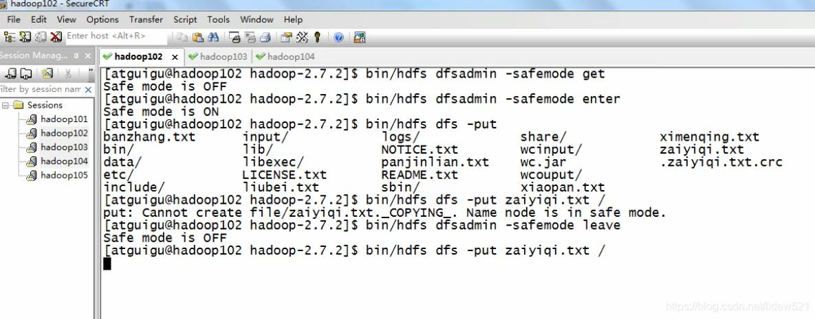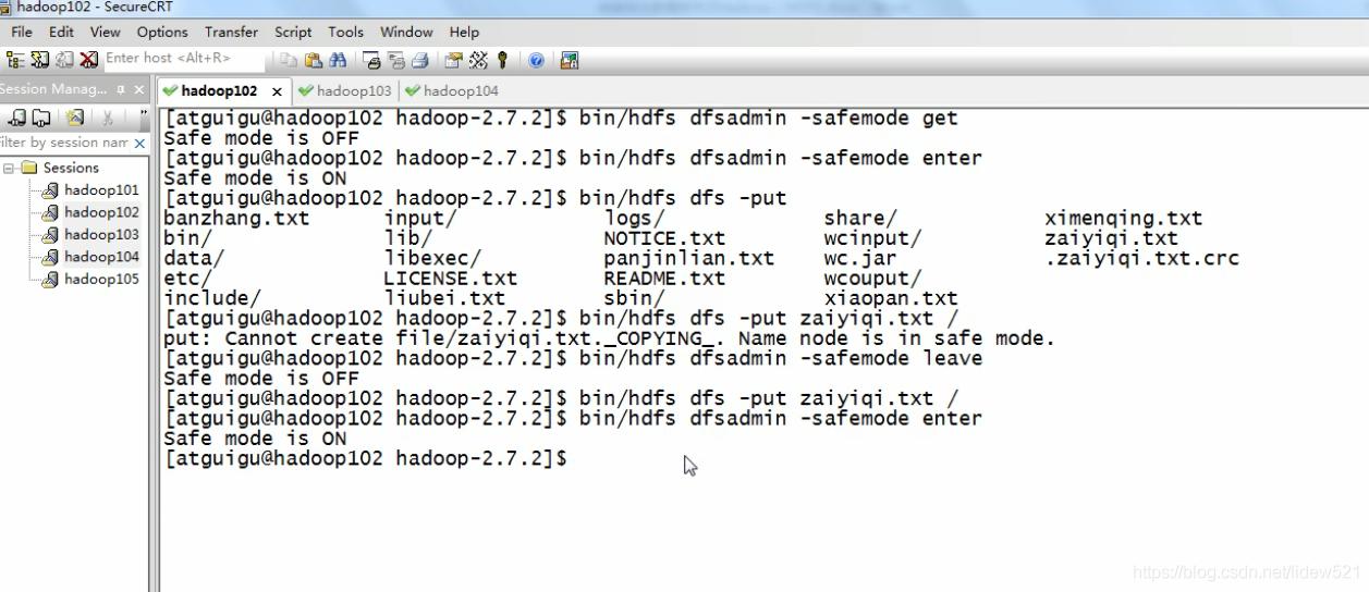然后我们再来看,hadoop的安全模式,我们操作一下,上面的命令对应了相应的功能
