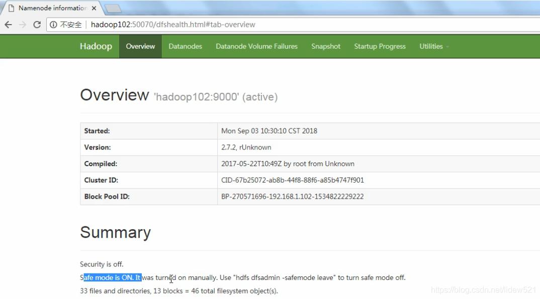 bin/hdfs dfsadmin -safemode leave 我们关闭安全模式
