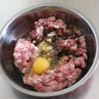 1、猪肉洗净剁碎成肉泥,也可以用料理机打碎。打入1个鸡蛋,加1勺盐,1勺黑胡椒粉,2勺酱油,1勺料酒,少量水。