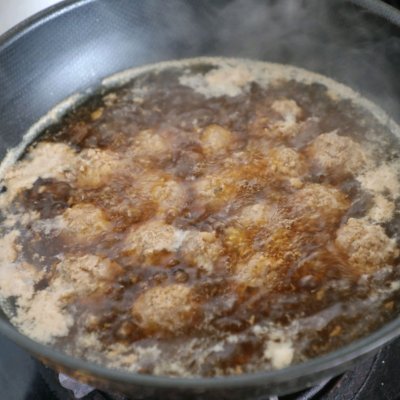 6、锅中水微开,转小火,依次下入丸子。刚开始水不能太沸,会煮散丸子。