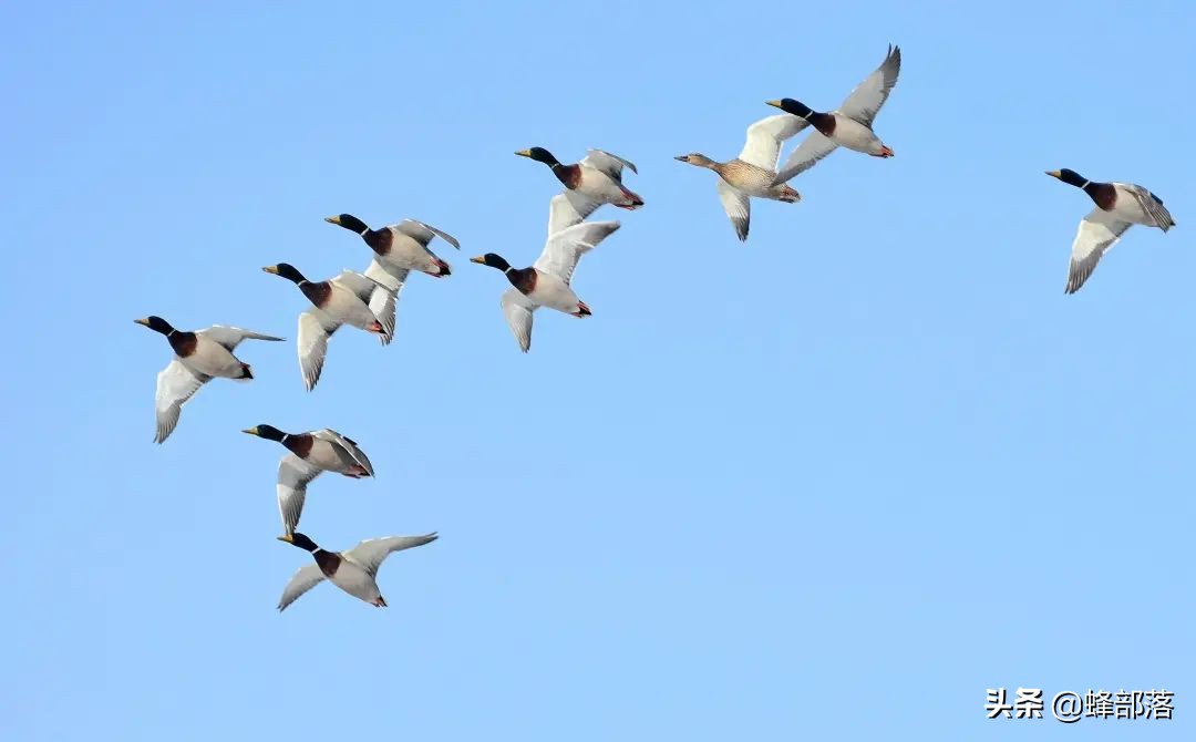 每年的3月份和9月份,绿头鸭都要进行一次迁徙,由头鸭在前边飞,后边的群鸭跟着头鸭迁徙到别的地方。因此,迁徙的鸟类基本都是由头鸟带队,群鸟跟随的特性,绿头鸭当然也有这样的习性。