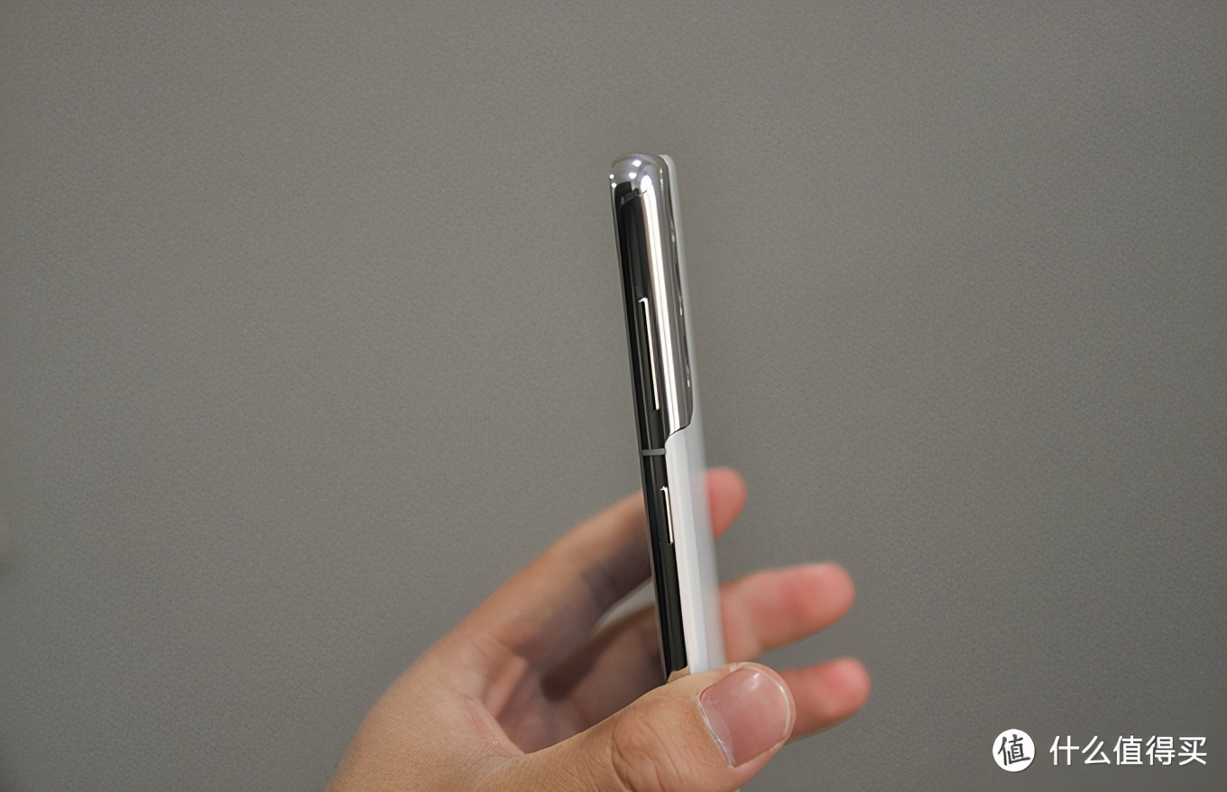 手感这个东西因人而异,可能就有人喜欢沉甸甸的拿手里非常有分量的那种感觉,但是我自己来说更喜欢一手能够掌控的满足感,有时候手里不方便的时候,一只手拿出来接个电话回个微信,还是非常惬意的。S21更窄一些,一只手拿捏的时候非常有信心,当然因为屏幕长宽比的原因,大拇指按屏幕最上边的时候会有些吃力,所以,如果S21稍微短一点的话,就像S9那个长宽比的话,我会给更高的分数。
