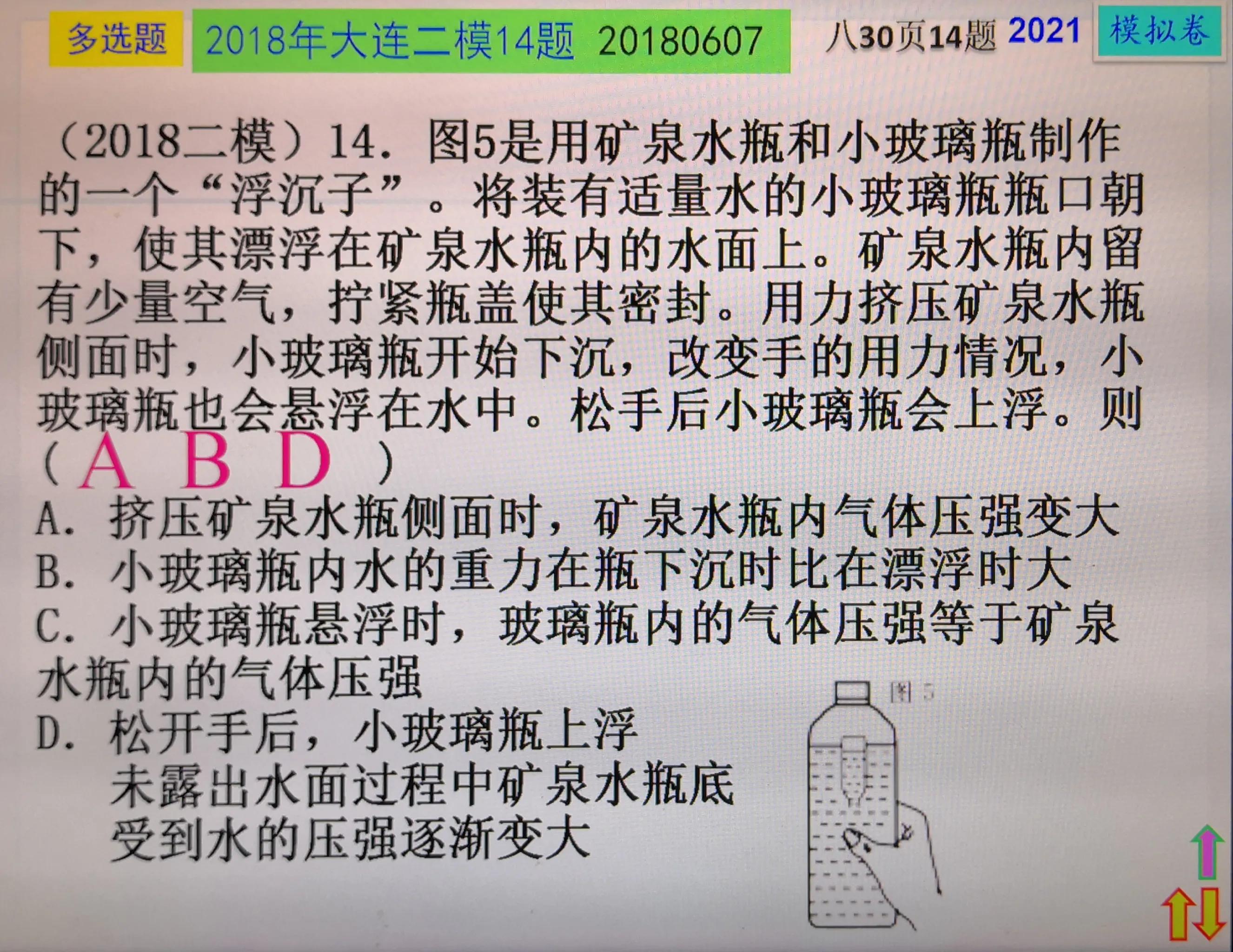 2018年6月7日 大连市中考第二次模拟考试 14题 多选题