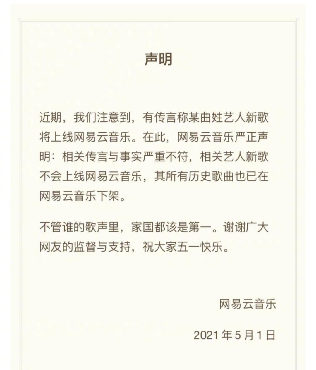 网络上的声音几乎一边倒地抵制曲婉婷,某平台也出面澄清绝不会上线曲婉婷任何歌曲,所有历史歌曲也全部下架,态度立场明确。