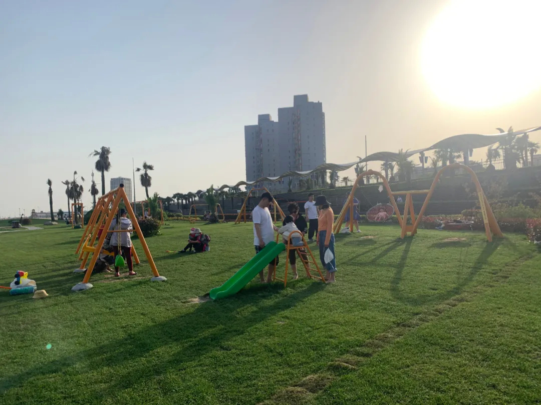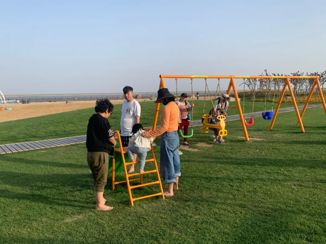 傍晚,行走在海边,落日余晖映照着海面,形成海天一色的独特景象,暮春的海风吹拂在脸上,没有盛夏时节的燥热,柔和且舒爽。不少市区的家长带着孩子前来游玩,孩子们在草坪上荡秋千、滑滑梯,玩得不亦乐乎。而另一边,还有帆船项目也吸引了不少游客的目光,乘着海风,迎着落日,徜徉在碧海蓝天之中。