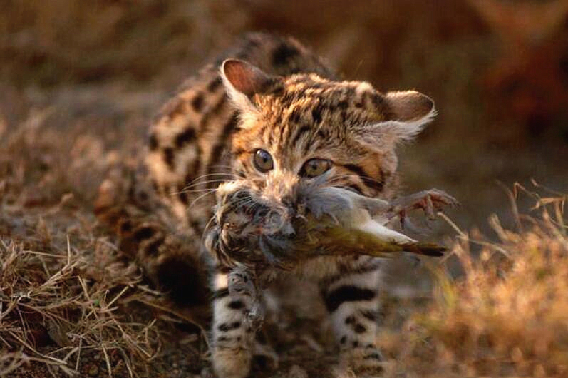 它们只有晚上才会出来觅食,为了寻找食物,最多能走上32公里,这是小型猫科动物中目前已知的最远记录。它们捕杀猎物时也异常凶猛,老鼠,鸟类,和爬行动物是它们的最爱。
