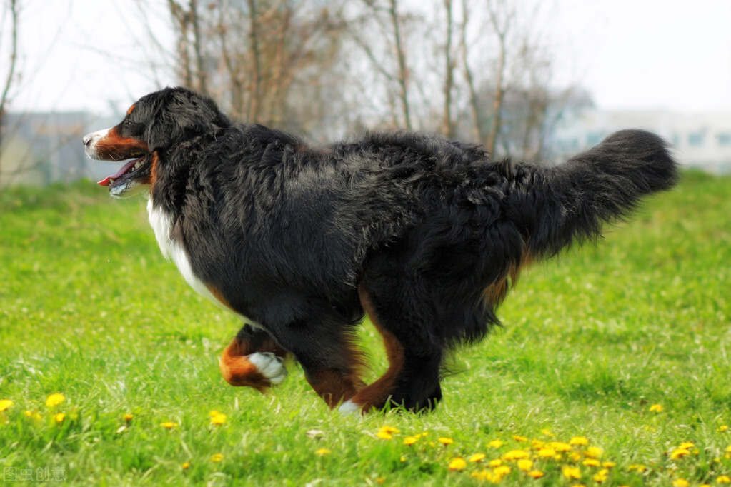 美丽的伯尔尼山狗奔跑Beautiful Bernese mountain dog runs
