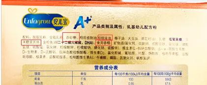 基础强化配方:1段2段6项基础强化配方添加齐全,3段缺少ARA、核苷酸