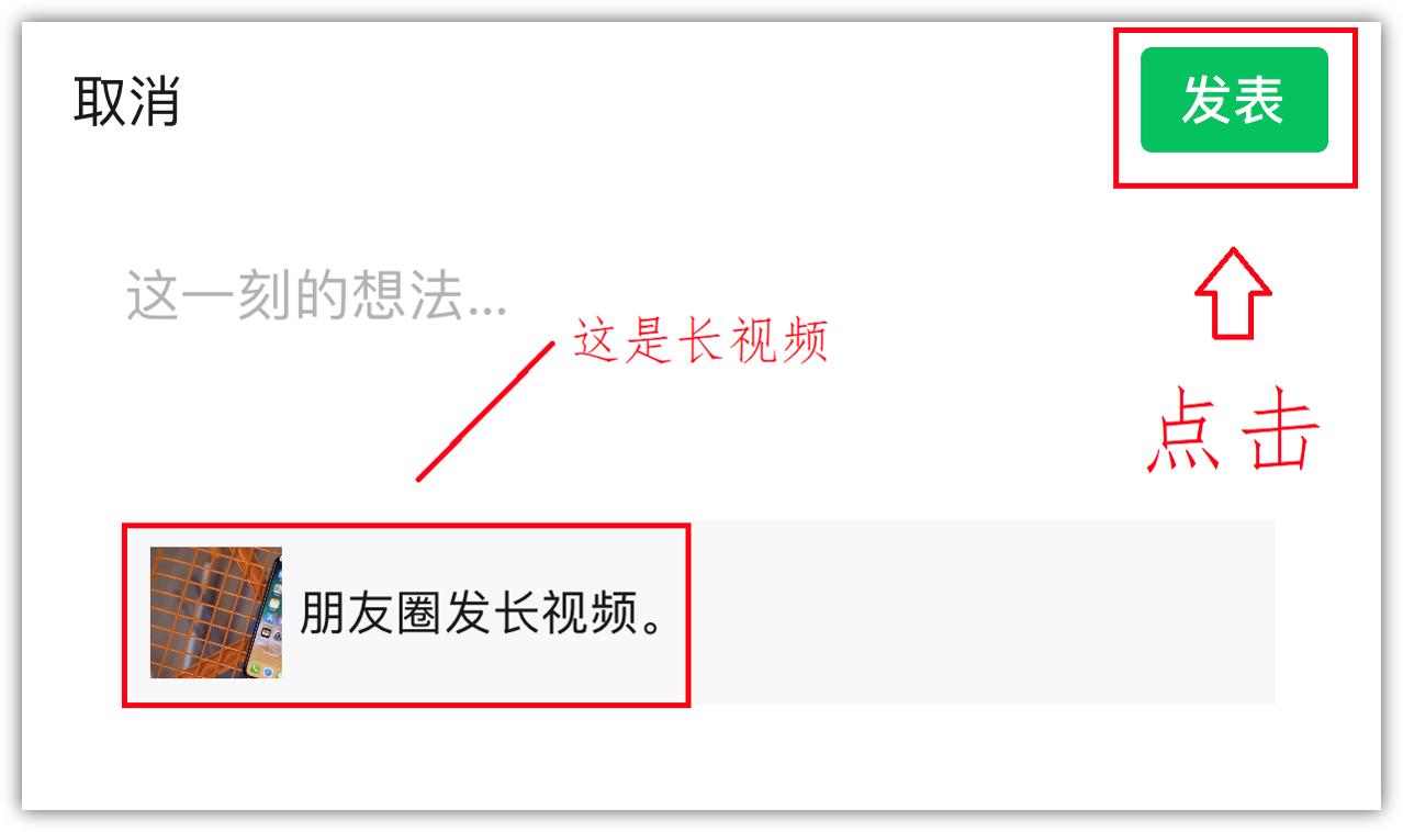 这样就可以将这个长视频,分享到朋友圈了,再配上一段文案,点击「发表」即可。