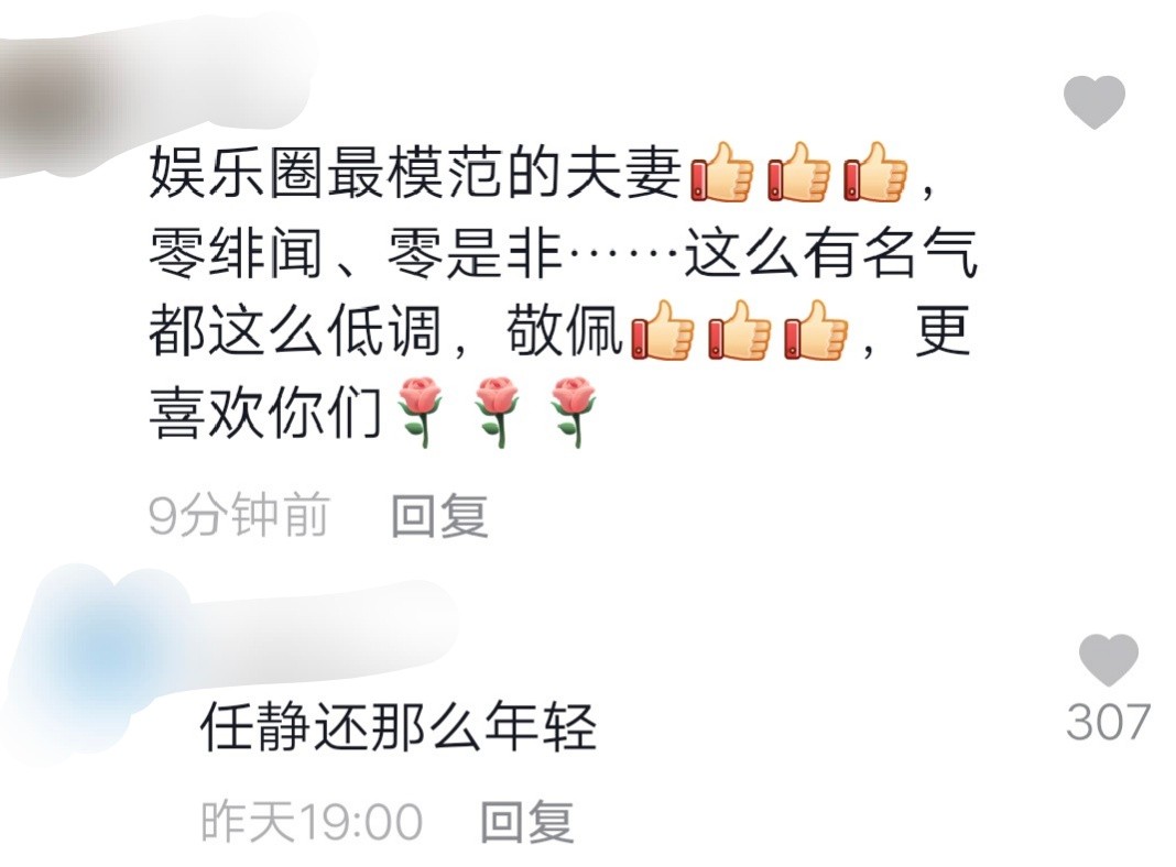 该条视频也引起众多的评论,网友纷纷夸赞付笛生和任静是模范夫妻,还有的网友赞叹任静依然年轻。