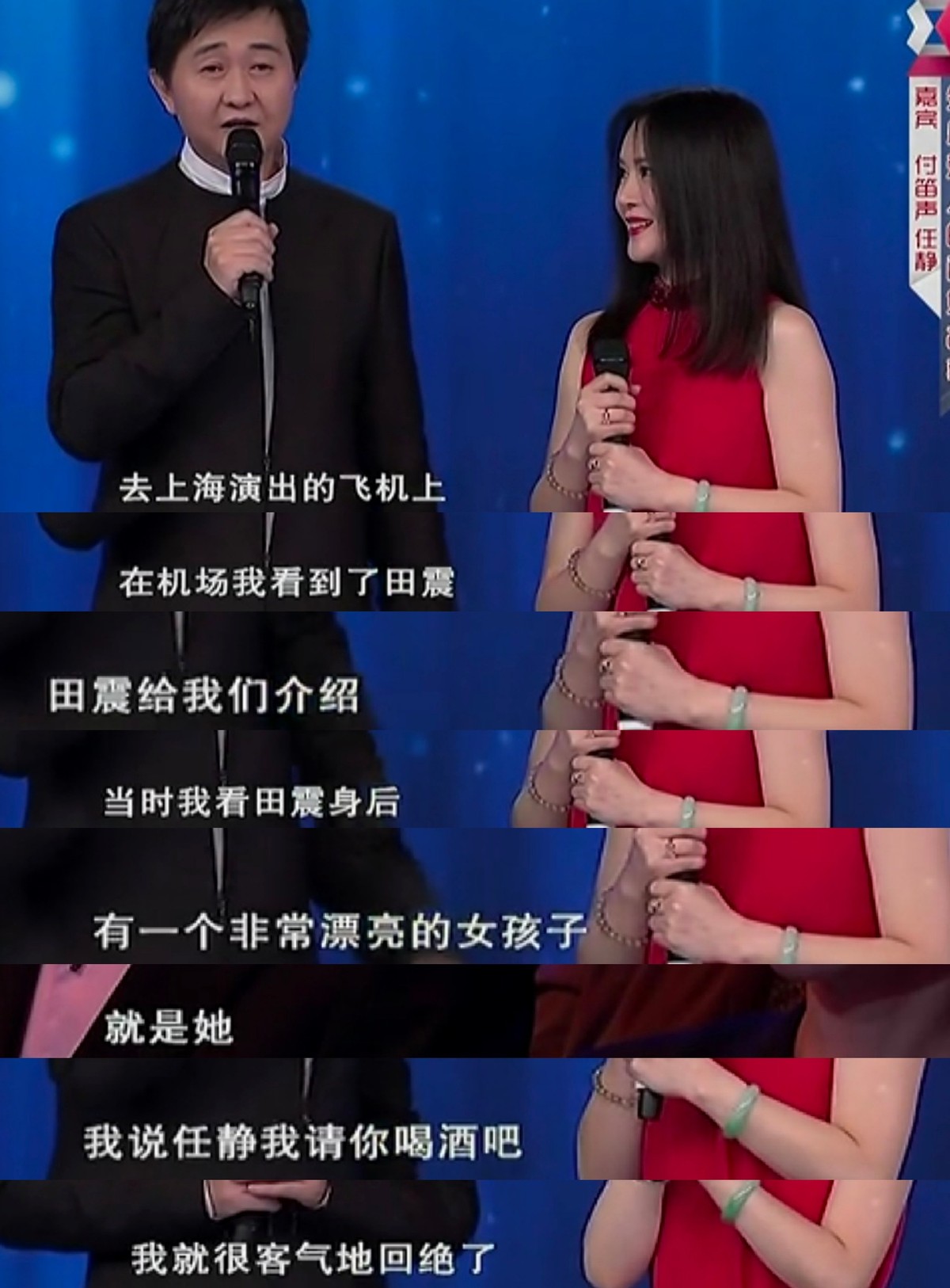 作为一对恩爱的夫妻,其实两人相识充满了巧合。任静与付笛生相识于1988年,某次外出演出时两人刚好坐在同一架飞机,便经由歌坛天后田震认识,付笛生一下就被美丽的任静吸引,随后付笛生邀请任静喝酒,但却遭到了任静的委婉拒绝。