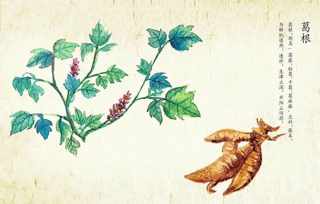 性味归经:葛根甘、辛,凉;归脾、肺、胃经。丹参苦,微寒;归心、肝经。