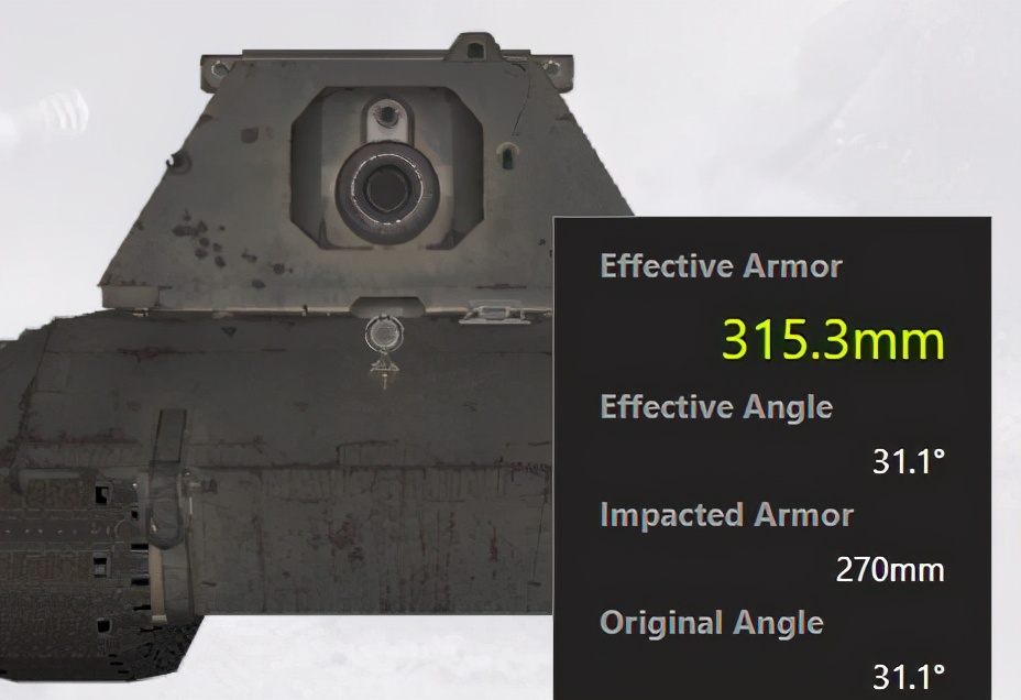 而E-100则因为炮塔正面正对敌人时等效厚度降低,则需要连带炮塔一起面对敌人“摆角度”。在“摆角度”姿势下,E-100的整体防御力会有大幅提升,炮塔和车体侧面更是几乎无法击穿。但角度的把控非常重要,一旦角度过大反而弄巧成拙。