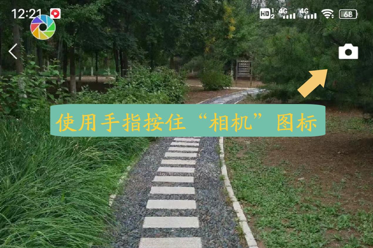 如上图所示,这是正常发送朋友圈的入口,如果想要发送纯文字的朋友圈,步骤是相同的,但唯独不同的地方是,用户不能直接单击“相机”图标,而是使用手指按住“相机”图标。如下图: