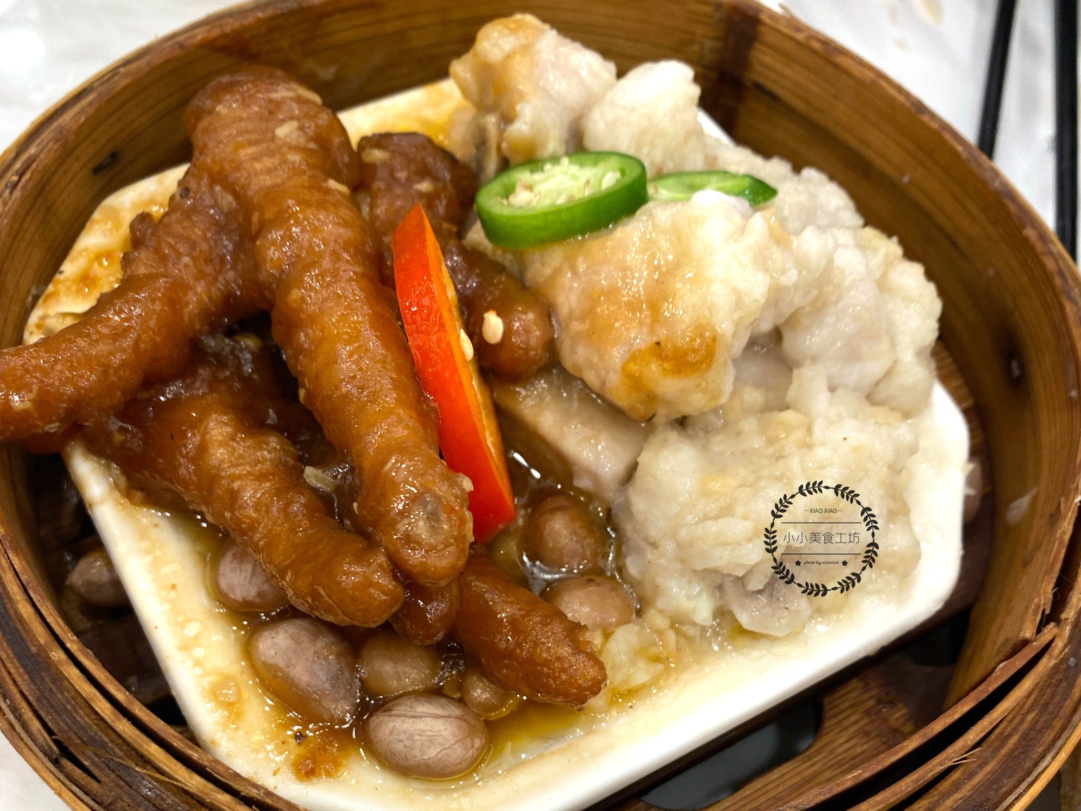 豉汁排骨和凤爪也是必点的单品,跟平时吃到的排骨凤爪口感差别很大,是那种口感特别鲜嫩爽滑,同时又特别入味,基本吃一口就是脱骨的状态,豉汁排骨一般用芋头垫底,芋头吸收了排骨的肉香味,吃起来也特别美味。