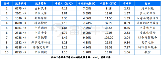 港股通板块个股方面,从南下资金买入及卖出活跃程度的维度来看,上周,保险、银行、房地产、汽车等板块交投较为活跃,净买入居前三的为吉利汽车、中国太保、新华保险,净卖出居前三的分别为建设银行、融创中国、招商银行。