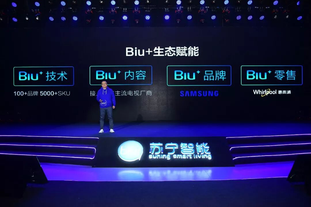 在合作伙伴上,苏宁愿意进行技术上的分享,比如BiuOS技术的分析,目前苏宁连接110个品牌和5000个SKU。