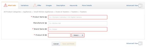 (3):在提供的数据字段中输入您的商品详情,注意标有*号的为必填信息,最后点击【Save and finish】