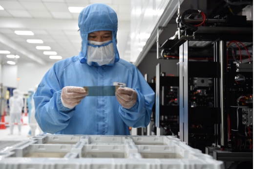 记者注意到,柔宇对生产环境的要求非常严格。单层约10米高的洁净间内宽敞明亮,高精尖、高度自动化的设备有条不紊地运转,整个产线的洁净度要求非常高,每立方英尺0.5微米的颗粒物小于100个,要求非常严格。为了达到这个标准,产线里还专门设置了无尘室循环系统,能够有效的带走热量、灰尘等影响洁净室环境的物质。这都是因为电子产品的生产对环境要求非常高,只有进行科学管理和严格要求才能保证柔性屏的生产质量。