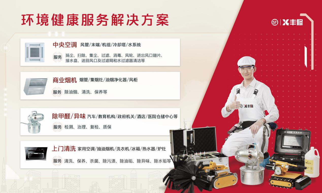 把脉市场动向,瞄准中央空调、商业烟机高端清洗维修及甲醛检测治理等需求呈井喷式增长态势,顺丰丰修深耕售后,凭借专业服务团队、一流装备工具、标准化上门服务体系强势切入致力于为企事业单位、商业地产、酒店餐饮业、航空提供包括中央空调、UPS、精密空调、冷却塔、商业烟机高端清洗维修及甲醛检测治理等环境健康服务。