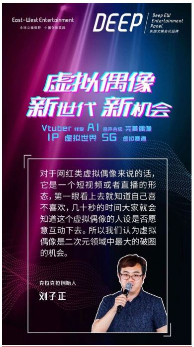 刘:我认为整个的虚拟偶像市场,在国内刚刚启动刚刚开始,但是正因为刚刚启动刚刚开始,所以才会有更大的机会,那么克拉克拉已经作为先行者投入进来了。