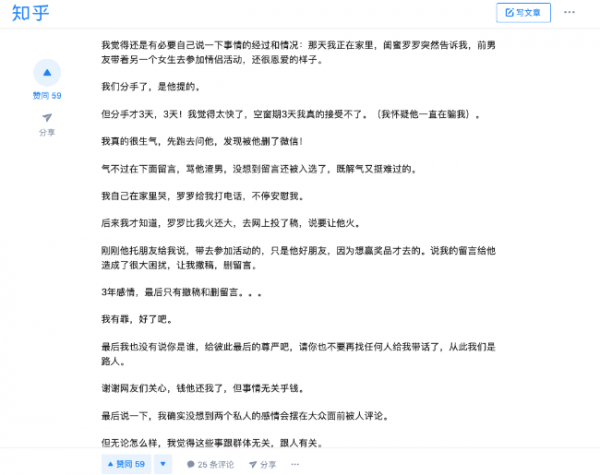 很多网友分两边倒,一边认为出轨属于个人行为,不该一杆子打翻一船人,更不该将个人行为牵扯到群体身上,一边认为程序员就是一个容易出轨的群体。就在两边网友相互争议之时,出轨事件女主在知乎上发声,阐述了她被绿事件的来龙去脉。