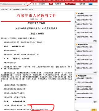 搬家消息的来源是5月2日,河北石家庄市政府网站发布2017年18号文件——《石家庄市人民政府关于市政府领导班子成员、市政府党组成员工作分工的通知》。
