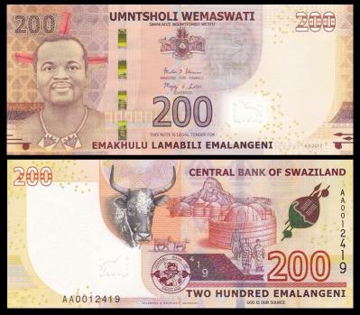 因此在2018年发行的200里兰吉尼上面的国名由原先的SWAZILAND变更为eSWATINI