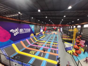 蹦床公园中最主要的就是蹦床游乐设备,不仅只有蹦床所需要支架、蹦面、软包、围栏等,还需要好玩有趣的特色项目,比如网红粘粘乐、火爆抖音的极限酷跑、花式大扣篮等等,一套合理的蹦床项目设备能够为乐园增强消费者的粘性,提高消费者的体验感。蹦床公园场馆内部的设备不单单指的是游乐设施,还有其他的硬件设施包括空调、风扇、吧台、休息区桌椅、储物柜、闸机设施等。