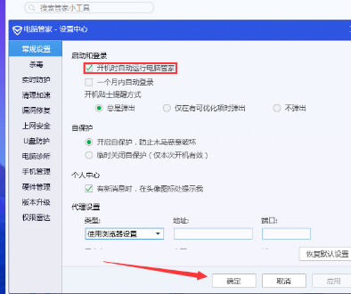 勾选“开机时自动运行电脑管家”,按下“确定”进行保存,再重启腾讯电脑管家即可。