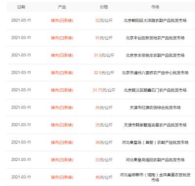 上一周的猪肉批发均价为38.86元/kg,比前一周则是跌了5.4%;截止3月10日,均价跌至38.14元/kg,比起上个月同期的45.39元/kg来看,跌了7.25元/kg。