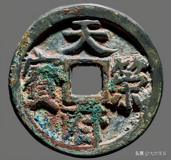 公元9年,王莽篡汉,建立“新”朝,始建国二年(公元10年),进行第三次货币改革,除沿用汉代的方孔圆钱之外,他还下令铸造六泉、十布等新币。新莽货币,钱文纤细,工艺讲究,版别亦多。大体钱文以悬针篆为主。