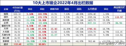 如表所示,4月份,10家上市猪企共出栏生猪1131.45万头,环比下降0.73%,同比增长幅度从上月的75.69%进一步收窄至65.36%。