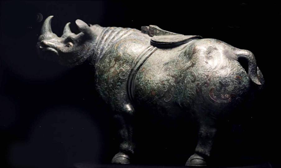 在我国国家博物馆中,有一件精美的器物:错金银云纹铜犀尊,该尊就是以犀牛的形状制作而成。