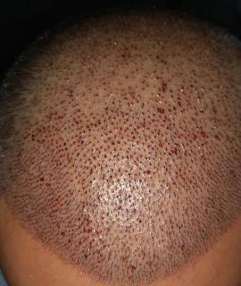 大概术后半个月,毛囊炎向我发出了警告,头上十几个小疙瘩,售后客服建议我用碘伏消毒外加涂抹百多邦,变白的小疙瘩可以用一次性针挑破,棉签挤出里边的脓液,再用碘伏消毒涂抹药膏。就这样我每天和十几个小疙瘩斗争,大概持续了有20多天才结束。