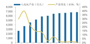 装饰板材市场规模近2000亿元,龙头领跑地位稳固,市占率提升空间大。公司装饰 材料产品包括装饰板材、五金、科技木皮、胶黏剂、石膏板等,以装饰板材为主。根 据中国林产工业协会发布的数据,2020年全国人造板总消费量为2.96亿立方米,产 值约6900亿元,其中胶合板类占63%、纤维板类占20%、刨花板类占10%;兔宝宝 主要经营产品(装饰板材)为家具制作及装饰装修用板,按照下游用途主要包括有 生态板(胶合板)、家具板(胶合板)、顺芯板(刨花板)、难燃/阻燃板(胶合板) 等;而根据我们对各类房屋销售和板材需求的计算,2021年装饰板材空间约为1900 亿元(没有考虑农村自建房,没考虑木门木地板用板),整体来看,2021年公司面 向的中国装饰板材市场规模超2000亿元。