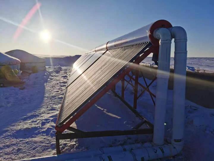 有些业主期望通过太阳能集热器获得更多免费的热量,就多配了几组太阳能集热器;也有些业主权衡了短期的利益,少赔了几组太阳能集热器。在这里,我们按照每平米2支集热管为标准配比,即100平米配200支集热管(5组40管太阳能供暖一体机)。