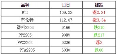 交易商评估供应前景潜在改善以及西方制裁俄罗斯对石油供应的影响, 国际油价反弹。周五(3月11日)纽约商品期货交易所西得克萨斯轻油2022年4月期货结算价每桶109.33美元,比前一交易日上涨3.31美元,涨幅3.1%,交易区间104.48-110.29美元;伦敦洲际交易所布伦特原油2022年5月期货结算价每桶112.67美元,比前一交易日上涨3.34美元,涨幅3.1%,交易区间107.13-113.91美元。